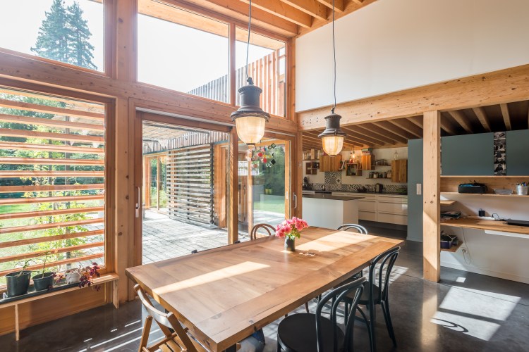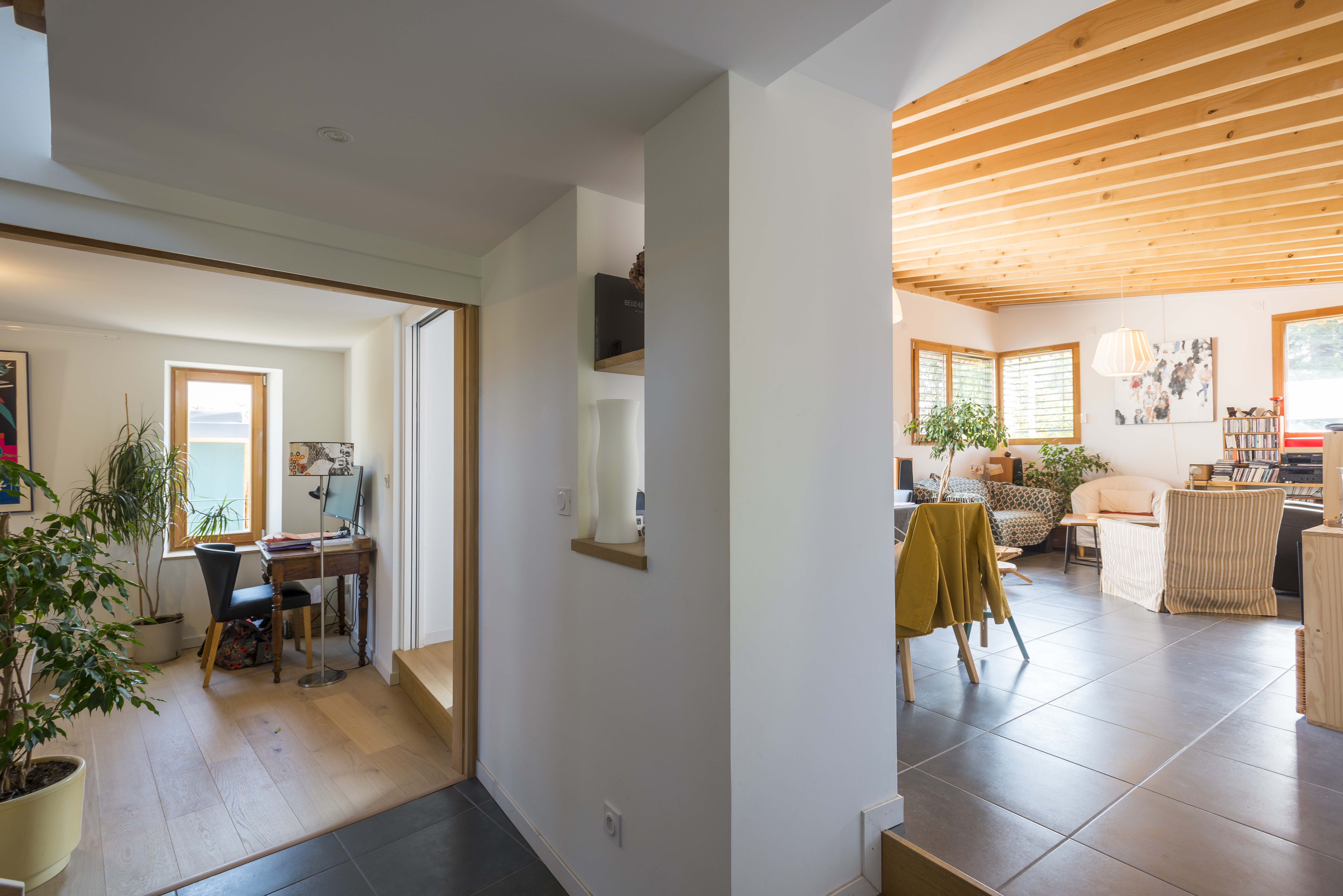 Maitre d’ouvrage : PRIVE Architecte mandataire: Atelier de la place Bureaux d'études: Vessière, L'Ingenierie Climatique, In Situ Rénovation maison et extension en ossature bois Construction bois, bardage douglas, toiture végétalisée, récupération eaux de pluie Photos: Sandrine Rivière Lauréat Prix Départemental construction bois 2018 Projet primé Valeur d'exemples 2019
