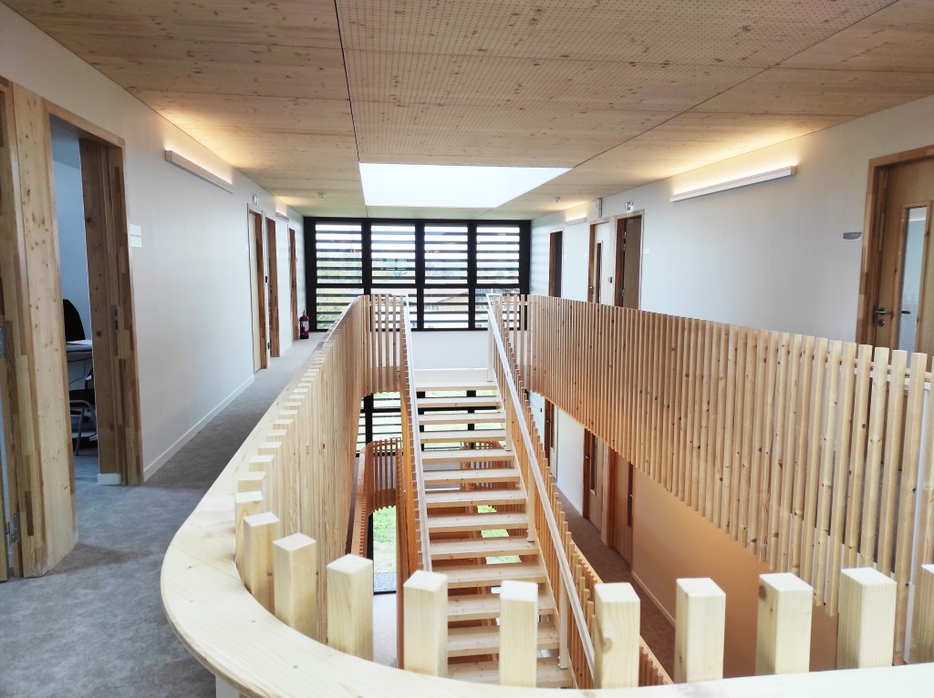 Maitre d'Ouvrage: CCPA Architecte mandataire: Gallet Architectes Architecte associé: Atelier de la place Bureaux d'études: Tectoniques ingénieurs, Economia, Arborescence Montant travaux: 3 800 000€ HT SHON: 2 570m² Bâtiment en structure bois, planchers CLT, murs pisé, récupération d'eaux de pluie, géothermie